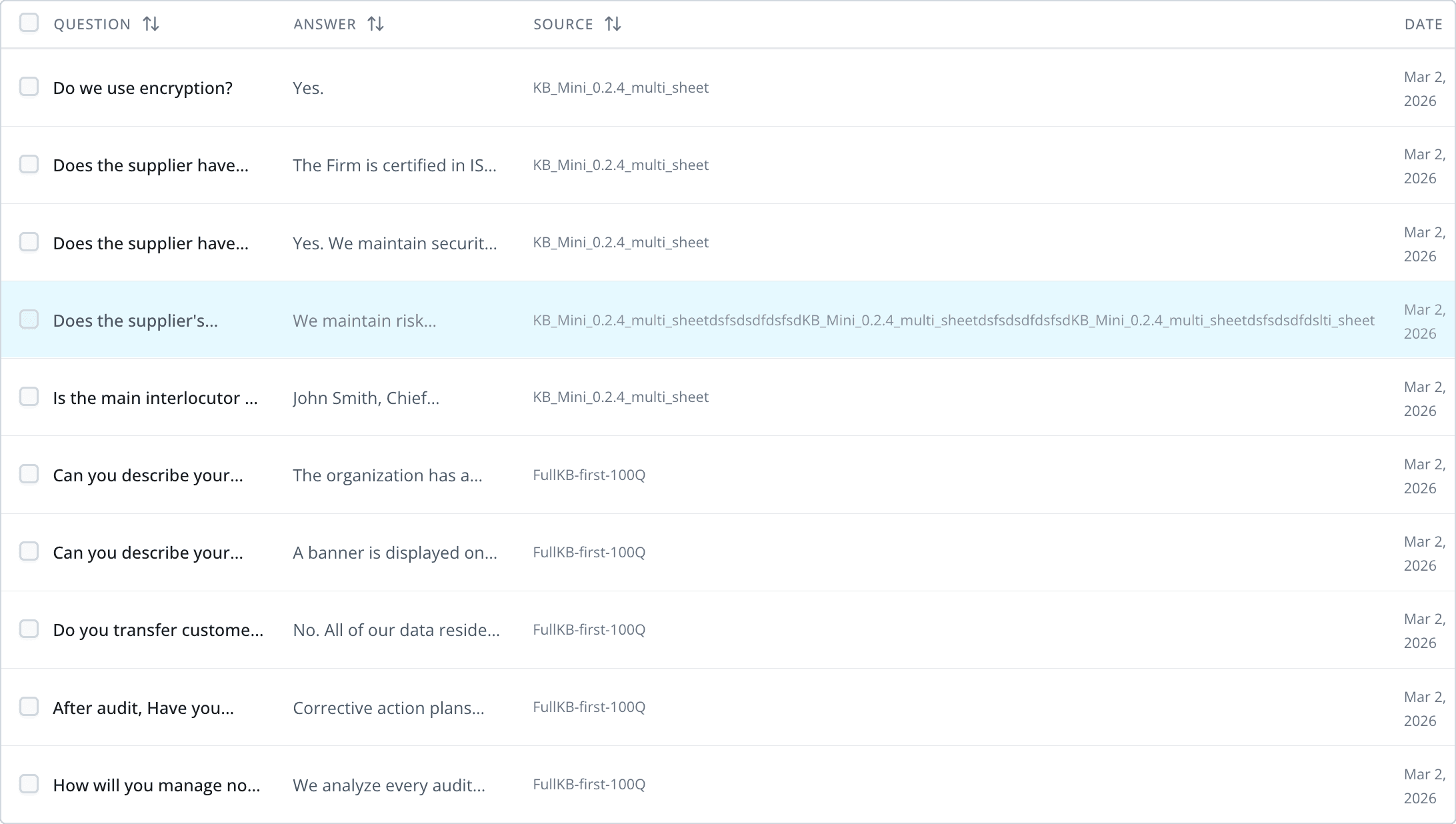At Sentri, that means managing Q&A knowledge pairs, evidence documents, questionnaires, and client compliance guidelines. Tables aren't supporting the product. They are the product.