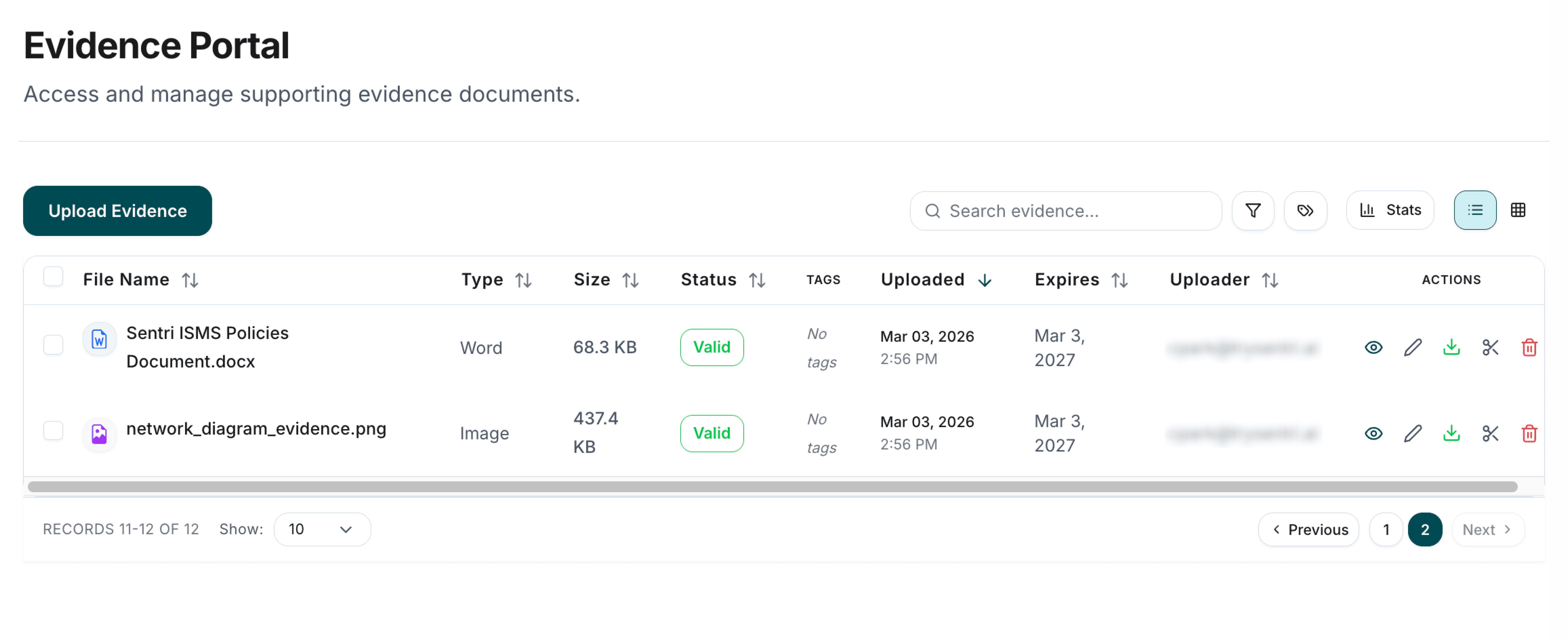 Once the Q&A table was solid, I applied the same pattern across 3 more views (Evidence Portal, Client OCGs, and Answered Questionnaires). Unifying row density, header alignment, action placement, and toolbar patterns across the product.